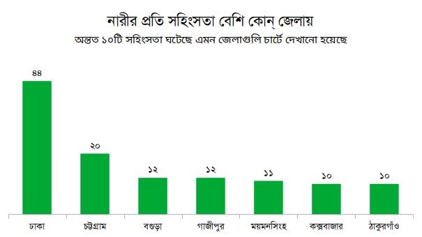 ৩। সহিংসতা সবচেয়ে বেশি কোন্ কোন্ জেলায়