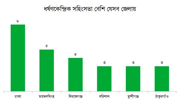 ৪। ধর্ষণকেন্দ্রিক সহিংসতা বেশি যেসব জেলায়